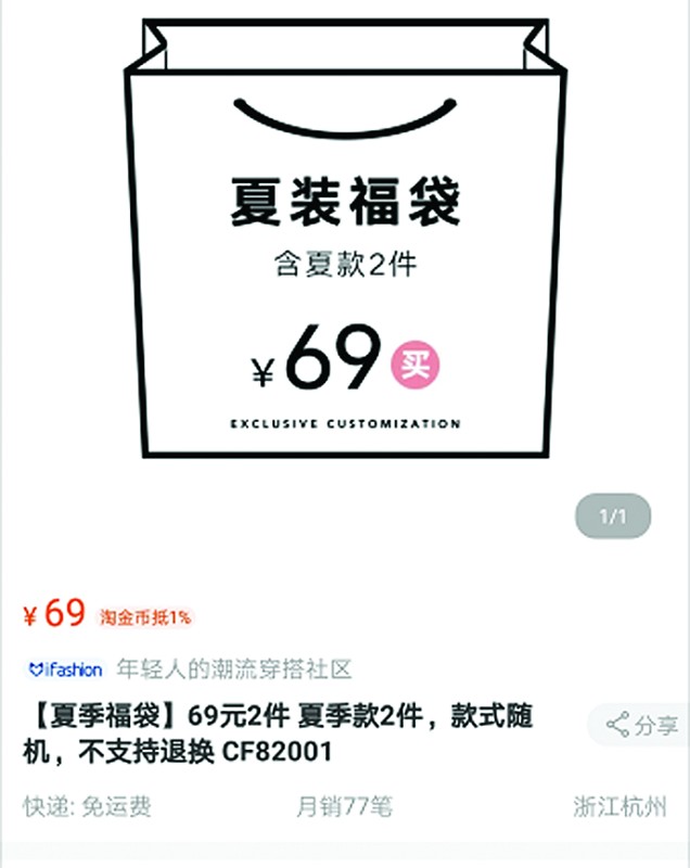 所谓“福袋”,是指商家设定的“神秘”商品,售价低于商品原价,消费者购买时并不知道“福袋”中的商品是何物。在淘宝首页随便搜索“福袋”,便有超过6.15万件商品。里面可能是车票补贴、店铺优惠券,也有可能是新年定制的产品大礼包,甚至只要花上99元或199元就能买到3件左右的服装或其他产品。“可能是一条裙子,也可能是两件T恤,或者是店内的饰品,商品价值高于标价2到3倍。”一家女装店铺打出这样的福袋广告。“真期待福袋里到底有什么,这种玩法玩的就是心跳啊。”在淘宝上选购服装的李小姐被商家的新玩法吸引,但兴奋的同时她发现,大部分福袋不能退换。