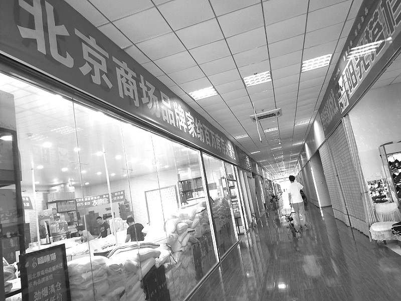 位于京东燕郊的方舟广场,由于近几年周边房地产的态势和北京拆迁的辐射,原来的大面积空地,陆续改造成新的市场。窗帘服装厅在迎来开业的繁华之后,在炎热的7月,一些商户陆续撤摊。由于是工作日,定制和购买,窗帘的人很少。而几个做床品的摊位却一直在忙碌。