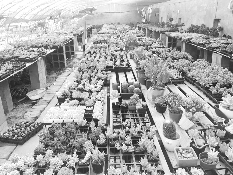 笔者来到位于海淀区的遇见多肉植物园,一进大棚,一股热浪扑面而来,给人十分闷热的感觉,几台工业电扇日夜不停的增加通风,棚顶拉着稀疏的遮阳网,各类品种的多肉植物摆放在苗床上,这里的多肉植物最大的特点,就是同一个育苗盘里的多肉植物,生长状态并不一样,和市场上那种整齐划一的多肉植物有很大区别,笔者了解到这里最便宜的多肉植物,售价是5块钱一盆。“这几年虽然市场环境不好,但是咱们这儿从没有1元2元的苗,花木市场上那种叫商品苗,和咱们种的不一样。”遇见多肉植物园的孙老板向笔者介绍:“那种便宜的苗是温室苗,通过水肥和温度控制培育出来的,生长速度快,产量高,但是买回去很容易出现病害。有些朋友会发现,买回来又大又鲜的多肉植物,养一段时间以后,就出现掉叶子、黑腐等病害,因为这种商品苗,适应了温室里的生长环境,家庭养殖很难‘服盆’。”孙老板带笔者走进育苗大棚,笔者看到各种多肉苗木就在露天的环境里生长,孙老板说:“这种种植方式,从苗子生根开始,就在半自然环境里风吹雨淋,最热的几个月,遮阳也只用30%遮光度的遮阳网,上肥只用纯鸡粪,不用化肥激素,就让它自己生长,就当绿色蔬菜这么种,这种自然方式培育出来的多肉,虽然生长周期比较长,但是植株抗逆性很好,苗子长得健壮。”