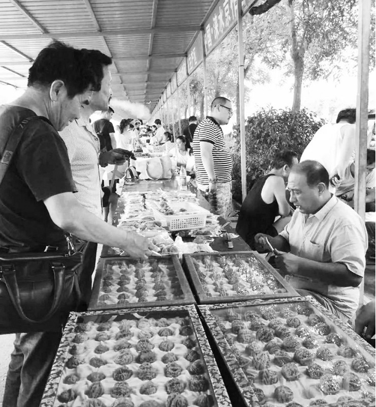 北京十里河天娇文化市场,曾经是北京规模最大的文玩核桃市场,笔者走访发现,炎炎烈日与冷清的市场,形成了鲜明的对比。大堆的核桃摆放在摊位上,很多商户直接写个牌子明码标价,价格上从10块钱到几百块不等。有的商户干脆就把一口袋核桃倒在地上,让顾客自己配对,20元到30元一对,随便挑选。“桑拿天我都不开空调,看看自己的摊位,心里拔凉拔凉的,连冰棍都省了!”吴大姐是这个市场的“老人儿”了,话语间透着一丝老江湖的敞亮,“现在周六日人还多点,平时也没什么人,有时候坐一天不开张也是常事。从2015年开始,核桃的价咔嚓一下就下来了。前几年生意好做,买核桃的多,卖的价格也高,利润空间大,这两年核桃降价很厉害,以前拿货上千的核桃,现在也就几百块钱。”笔者询问核桃降价的原因,吴大姐说:“核桃降价并不是因为品质不好了,反而是品质越来越好了,以前文玩核桃是越大越贵,2012年一对45(直径45毫米)的百花山核桃,能卖到一万多。谁家要有50的核桃,买家都追着你,开价就能成交,那时候大核桃少啊,物以稀为贵,现在55的核桃都不算大的了,大核桃越来越多,40以下的基本都没人要了,45的满天星现在也就卖100多块钱。”