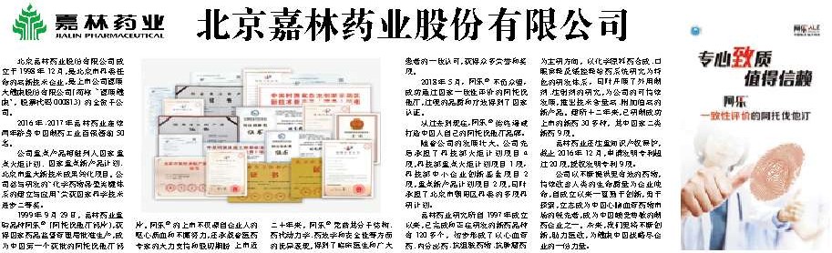 北京嘉林药业股份有限公司成立于1998年12月,是北京市科委任命的高新技术企业,是上市公司德展大健康股份有限公司(简称:“德展健康”,股票代码000813)的全资子公司。