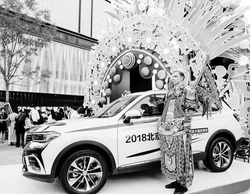 9月16日在北京王府井大街,2018北京时装周“亮相.王府井”,国粹与时尚共舞、现代艺术与未来科技创意融合,一身京剧元素的华晨中华V7在时尚与历史并存的王府井惊艳亮相,为世人奉献了一场惊艳绝伦的时尚艺术饕餮盛宴。