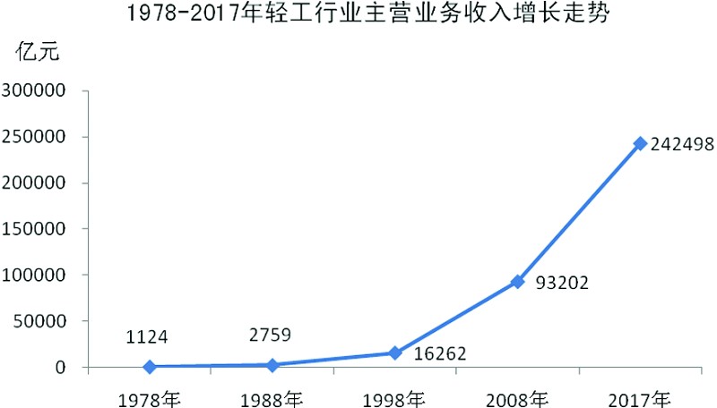 图1 1978-2017年轻工行业主营业务收入增长走势图