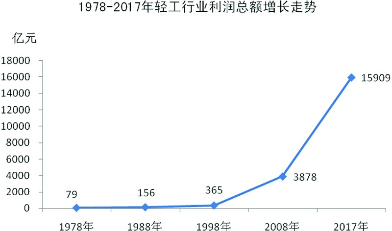 新中国成立以来,特别是改革开放40年来,轻工人在党的领导下,在改革开放的大潮中深化改革、砥砺奋进、团结拼搏、攻坚克难,使轻工业的面貌发生了翻天覆地的变化,创造出了辉煌的业绩,实现了历史性跨越,成就了世界轻工生产大国、出口大国、消费大国地位。2017年比1978年全国轻工业主营业务收入增长215.75倍,年均增长14.38%,低于全国工业0.7个百分点;利润总额增长200.29倍,年均增长14.17%,高于全国工业1.33个百分点;产品出口额增长283.88倍,年均增长15.17%,高于全国0.58个百分点。步入高质量发展时期,轻工业在习近平新时代中国特色社会主义思想指引下,以“让人民生活更美好”为宗旨,以促进消费升级为导向,积极推动供给侧结构性改革,通过科技创新等举措正向着建设世界轻工强国的目标奋勇迈进。