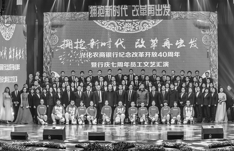 近日,江苏兴化农商银行举办”拥抱新时代 改革再出发“纪念改革开放40周年暨行庆七周年员工汇演,全面展示该行员工团结和谐、爱岗敬业、积极进取、乐于奉献的精神风貌,增强企业的向心力和凝聚力。 (吴卫伟)
