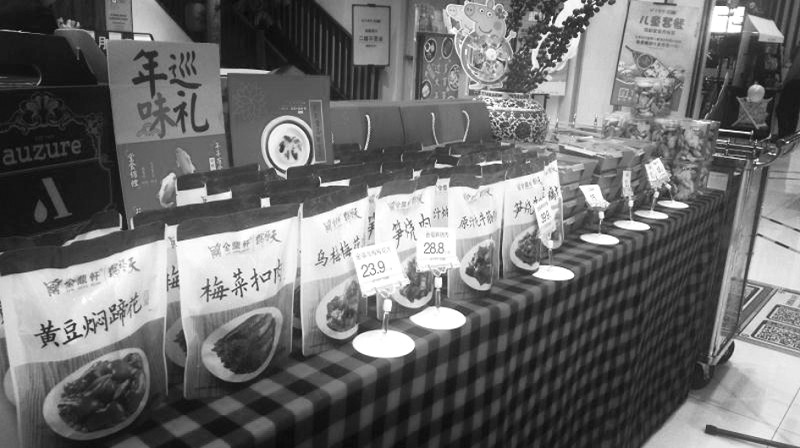 近日,记者在北京市丰台区凯德MALL大峡谷购物中心观察发现,在四层和五层的餐饮区,各个商家都开启了年夜饭预订热潮,各种套餐海报分外醒目,店面前货架上的各种礼盒琳琅满目,来来往往的就餐者往往驻足挑选询问。与精美包装的礼盒相比,外包装简单的各种菜肴单品更受消费者青睐。