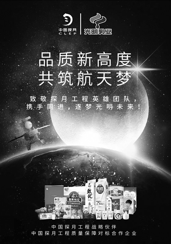 2月20下午,国家领导人在人民大会堂会见探月工程嫦娥四号任务参研参试人员代表并发表重要讲话。作为首家“中国探月工程质量保障对标合作企业”,光明乳业助力中国探月工程,用探月标准对标乳品质量,保障每一滴奶,都是探月品质。探月工程重大专项领导小组办公室向光明乳业送上感谢信。“嫦娥之父”欧阳自远院士给光明乳业送来了寄语,期待与光明携手共进,共寻光明未来。