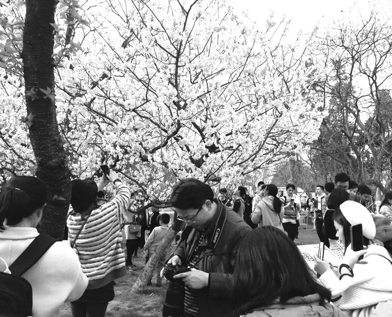 江苏南京玄武湖栽种的樱花与鸡鸣寺的樱花大道,一直都是樱花盛开的季节里,许多游客选择的热门景点之一。事实上,玄武湖的樱花还未全部绽放,但是记者3月18日在现场发现:鸡鸣寺与玄武湖的观赏人群已经达到了“摩肩接踵”的程度,鸡鸣寺通往玄武湖的道路上挤满了人群,不少游客都带着专业摄像机,穿着汉服走在当中。济南的韩女士告诉记者,她从山东坐高铁过来,就是来鸡鸣寺的樱花大道赏樱。“我听南京的朋友说,3月中下旬是樱花的花期,鸡鸣寺的樱花大道和玄武湖的樱花很出名,就过来了。不过没想到来早了,樱花没开几株,人比樱花都要多。”