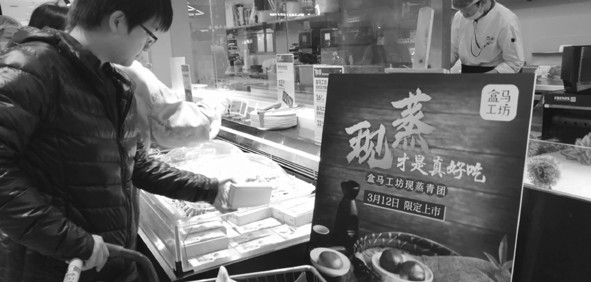 近日,记者在盒马鲜生百荣店看到,今年盒马工坊推出了流沙爆珠、笋干肉和酸菜鱼等口味的现蒸青团。有消费者向记者说到,“在微信公众号上看到了各种各样的青团推荐来的,为了吃到网红流沙爆珠口味的,特意邀请朋友一起来试试。”