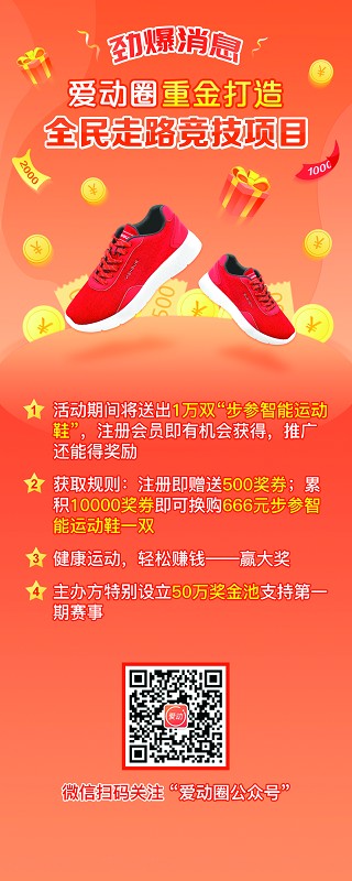 “爱动圈”平台由是由广州爱动体育科技有限公司、富豪电子竞技(深圳)有限公司、广东惠家商贸有限公司及朝琦区块链有限公司共同构建的"健康时代"的大数据商业服务平台。将依托现代信息技术及独特创新的社区经济模式,立足于城市智能健康出行,建设低碳生活,绿色出行为主的各类竞技比赛来推动全民运动。公司研发的"步参-智能运动鞋",将以自动记录每天运动步数,打造全民健康大数据,以走路方式推动、以奖金方式鼓励全民运动。
