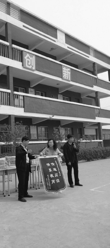 明德小学将“传递阅读,情系教育”锦旗授予石家庄新华书店儿童书城