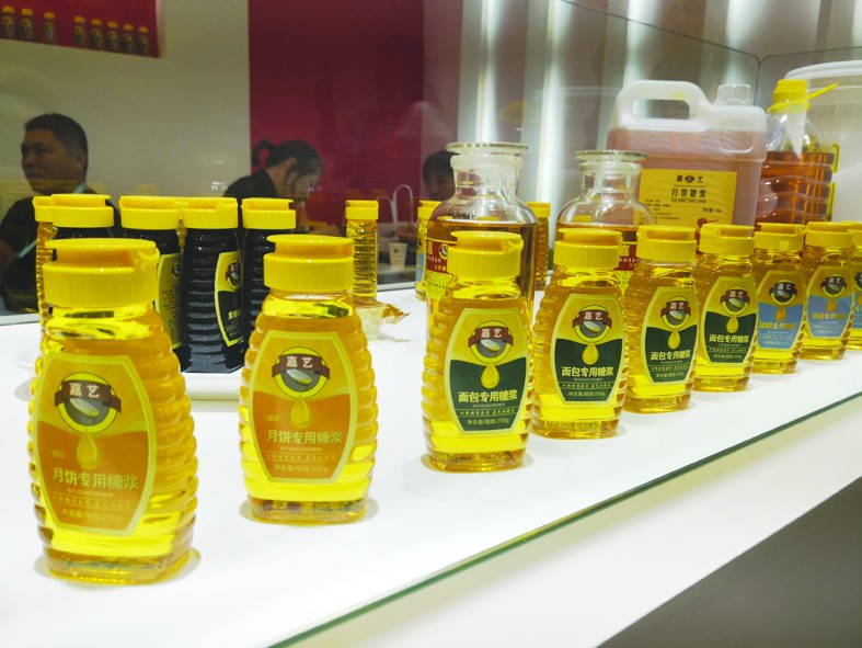 作为国内最早一批致力于月饼糖浆生产、研发、制造、销售及出口的糖浆食品生产企业,在江苏先卓食品科技股份有限公司展台区域,记者看到膳食纤维系列、糖醇系列、烘焙糖浆系列产品整整齐齐码在相应展柜里,其中烘焙类糖浆甚至细分为焦糖、黑糖、月饼、冷冻面团、老麦芽糖浆、面包糖浆、太妃糖浆、沙琪玛糖浆8个小分类。而在江苏淮安市淮阴区瑞祥食品厂的嘉艺牌糖展区,更是将每一种糖浆的技术与特点进行解释说明,如该厂家生产的嘉艺牌月饼糖浆是由碳化砂糖熬制,具有通透性强、上色美观、回油回软优良的优势。