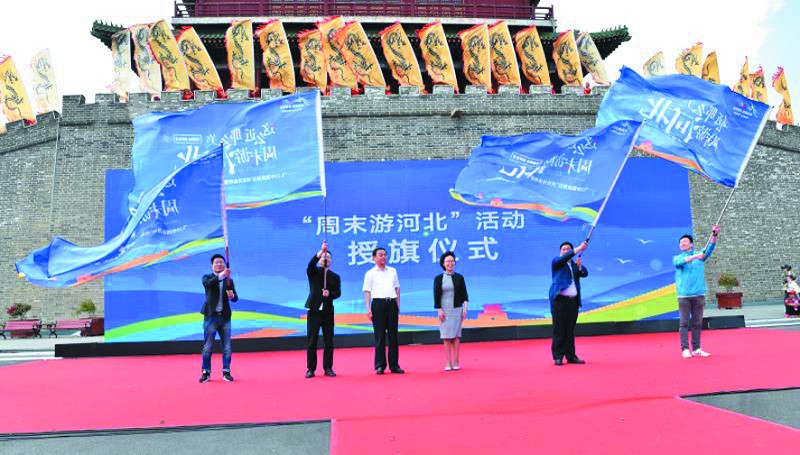 5月19日,“中国旅游日”河北分会场暨“周末游河北”活动启动仪式在石家庄正定古城举行。河北省文化和旅游厅厅长张妹芝和石家庄市委常委、正定县委书记张业共同为“周末游河北”活动合作单位代表授旗,京津冀自驾车俱乐部代表、旅行社、旅游达人、媒体记者和各地游客千余人参加活动。