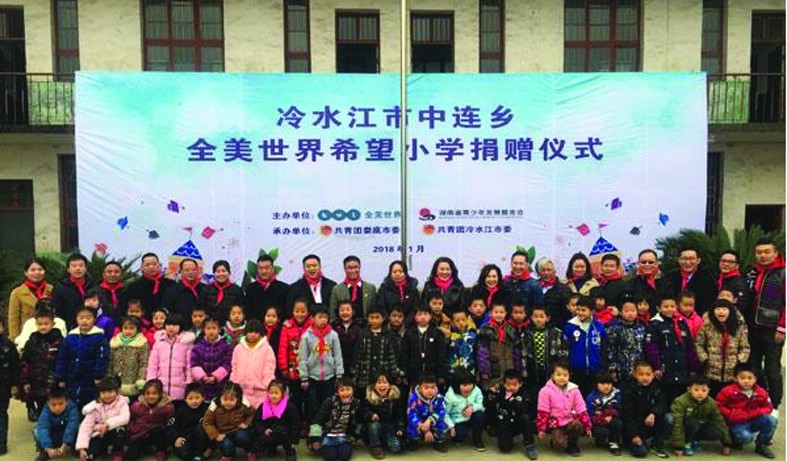 善无止境,爱心不息,“全美世界”深化公益教育领域,把爱心触角进一步延伸并落实在贫困地区和弱势群体,2018年“世界童窗”将湖南贫困地区的教育纳入了活动范围。2018年1月15日,“全美世界”希望小学捐赠仪式在娄底市冷水江市中连乡杨家小学成功举行。湖南省青少年发展基金会理事长李卫锋等,以及爱心企业人士一同见证了这场爱与希望的启程。杨家小学位于娄底市矿产枯竭区,随着工厂企业的撤离,村民纷纷转业,成年人多数出外打工,留守儿童和老人问题严峻,“全美世界”希望小学成立后,这里的学生将会成为“世界童窗”活动的受益者,也将成为这所小学的特色教育项目,每年将派出优秀学生代表前往新加坡进行学习交流。