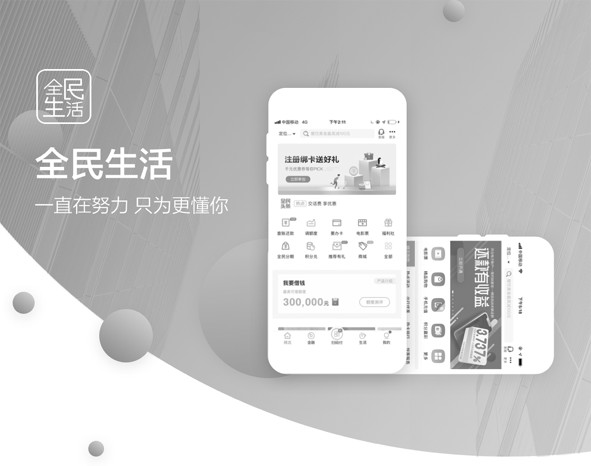 全民生活深度融合科技与业务,将繁琐冗杂的金融服务与生活消费变得方便、快捷。用户可通过微信、指纹、刷脸等方式一键登录全民生活,进行在线办卡、账单查询、还款、积分查询、分期申请、实时调额等基础操作,还能畅享彩票兑换、券码银行、机酒火车、影票饭票、ETC、话费充值、精品购物等40多项生活类服务,全民生活从金融场景拓宽到生活场景,致力于为客户提供优质的用卡体验。