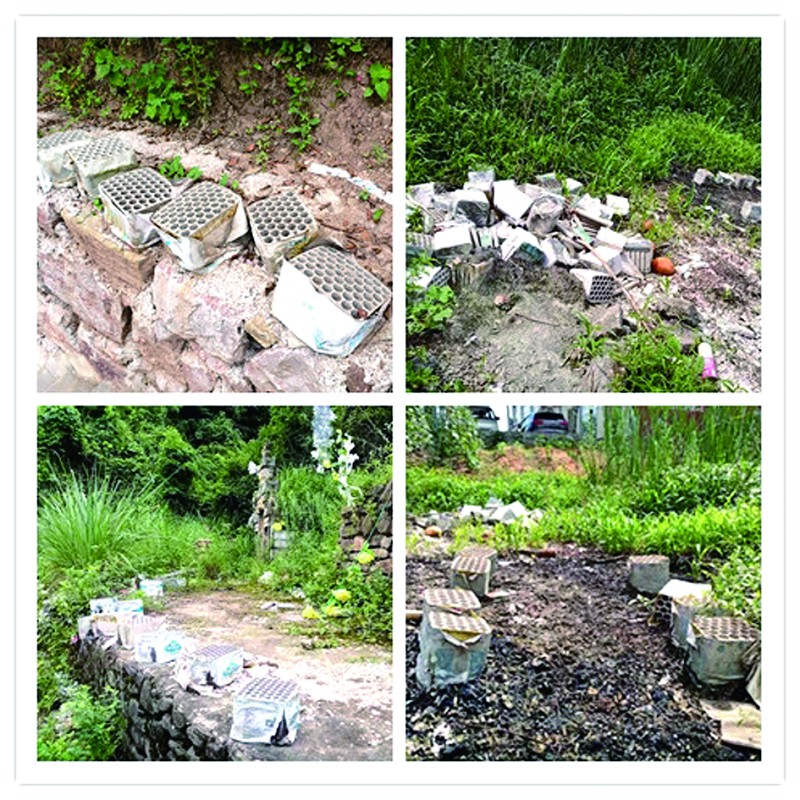 在张家界市桑植县瑞塔铺镇的228县道路边,零零散散的堆积了一部分燃放后的模压烟花产品,记者从附近居民口中了解到:“这些烟花一部分是在今年清明期间燃放的,一部分是春节期间燃放的。纸筒烟花在他们燃放后就被拾荒者给捡走了,而现在路边上堆积的都是拾荒者都不要的“石坨子”。”