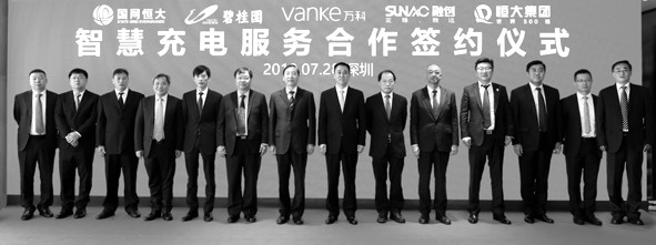 7月 28日,国家电网与恒大合资成立的“国网恒大智慧能源服务公司”在深圳恒大总部正式揭牌,双方各持股50%,将共同聚焦社区停车库车位的智慧充电服务。此外,国网恒大还与恒大、碧桂园、万科、融创等龙头房企在深圳恒大总部签订服务合作协议。