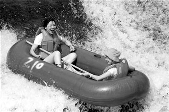 图为7月27日,游客在赤水市“丹霞第一漂”景区体验漂流。 (新华网)