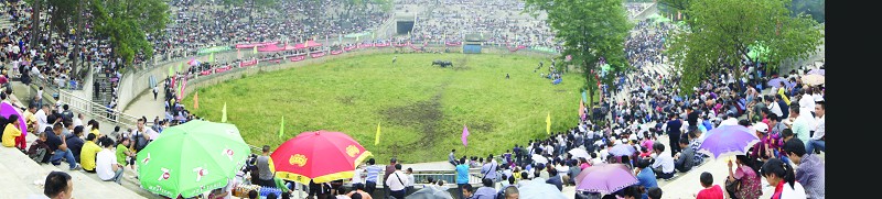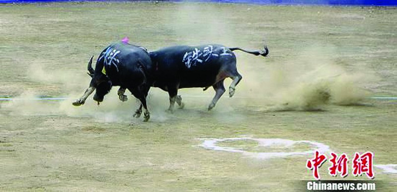 在中国,斗牛与足球一样精彩刺激,备受人们青睐。中国斗牛,至今已有五千年历史。在中国的许多地方,民间或政府都会定期或不定期举行斗牛比赛,评选最后胜出者为牛王。牛王出场披红挂彩,众人拥簇,威风凛凛,牛主无限光荣。斗牛场面猛烈刺激,盛况空前,吼声震天,数万牛王粉丝掌声擂动,扣人心弦。斗牛充满智慧与力量,充满精彩与刺激,不仅为人们提供了无穷的精神财富,同时也成了中华民族津津乐道的民俗文化竞技项目,代代加以传承。
