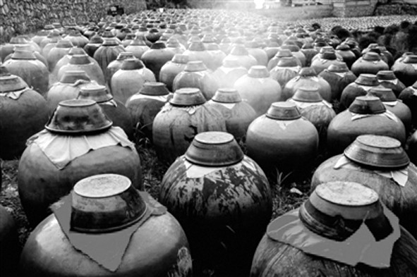 还未进入镇里,远远就闻到浓浓的醋香。离公路不远的山岗上,摆放着数千个硕大的瓦缸,镇党委副书记安宓告诉记者,那是醋厂在晒醋,把调制好的醋原料装在缸里放在太阳下面晒,让醋料自然发酵。