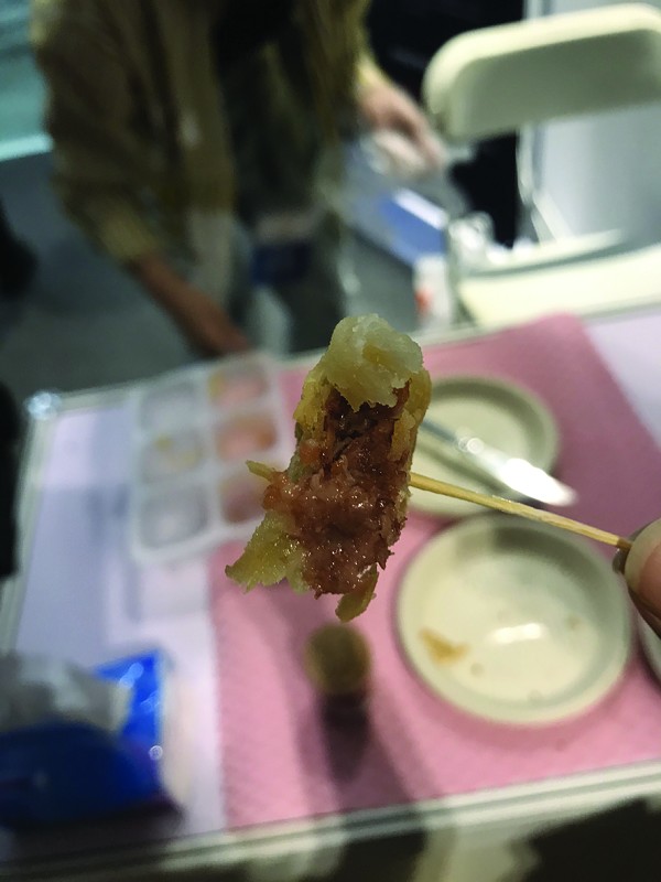 在第十九届中国方便食品展会上,记者也在“珍肉”展台品尝到了这款“人造肉月饼”。从外观来看,馅料部分与传统鲜肉月饼并无差异,仿真度极高。从味道上说,该款月饼尝起来与真肉的味道也很相似,唯一区别在于口感的不同,其产品馅料入口较为绵软,没有真肉有嚼劲。展台工作人员向记者介绍,这款产品主要的卖点就是健康,将人造肉与传统节日美食相结合也迎合了消费者的需求。不过她也坦言,尽管这款人造肉月饼口味与真肉接近,但在口感和嚼劲还有提升的空间。