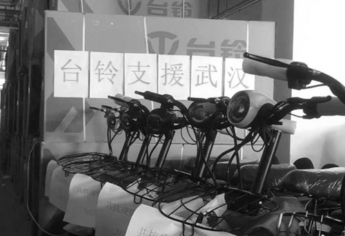 1月24日除夕夜,台铃集团召开紧急会议,决定为让奋战在一线的医护人员出行更方便,台铃“铃基金”将向武汉各大抗疫医院捐赠1000台电动车用以支持武汉医护人员安全出行,提高抗疫效率。台铃集团首批捐赠的50辆价值20万元的台铃电动车于1月28日送到武汉汉阳医院。