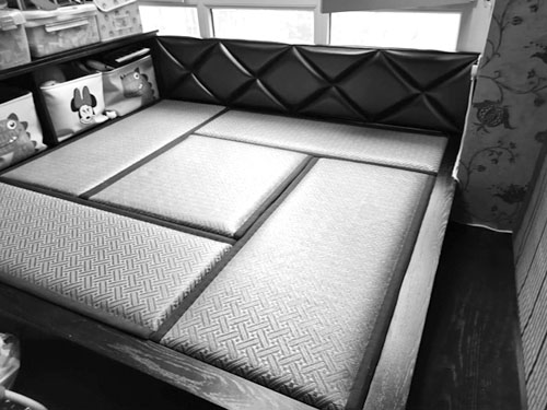 其中,可升降餐桌和可升降茶几是一个互通的类型。在客卧一体化空间中,可升降餐桌和可升降茶几一般和可升降沙发配套,可升降茶几升起、打开,就是一张餐桌或书桌,放下一部分就成为茶几,再降低,和沙发持平,就组合成为一张床或一个榻榻米。