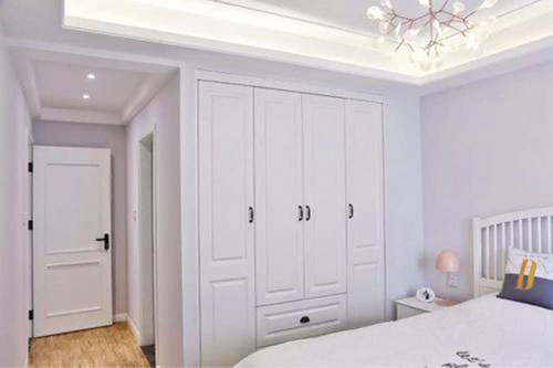 嵌入式衣柜的打造是很简单的,它能跟房间整体风格相融合,是相当有新意的,设计也非常的有个性,这样衣柜不占空间,实用性也是很高的。相比普通的大衣柜,嵌入式衣柜的价格是很便宜的,设计感十足,不仔细看还以为是墙面的装饰。