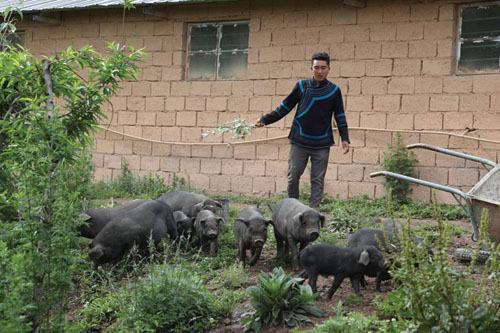 彝族青年郑吃合是三河村致富带头人,靠养殖乌金猪实现了脱贫。和村里很多年轻人一样,郑吃合高中没毕业就外出打工,把学到的规模化养猪技术带回了家乡。碧桂园驻村扶贫人帮助他成立了大规模养殖合作社,还通过标准养殖、规范防疫、品牌建设、销售支撑等多项举措,助推乌金猪养殖成为“一县一业”的样本。