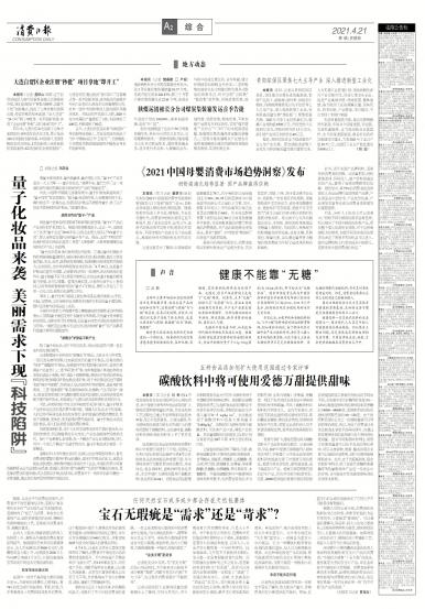 本报讯 (实习记者 闫 利)据4月12日国家食品安全风险评估中心网站消息,关于爱德万甜等5种食品添加剂扩大使用范围和使用量的申请,其安全性和工艺必要性已通过专家评审委员会技术审查,现公开征求意见。记者注意到,作为甜味剂的爱德万甜本次申请扩大的使用范围用于碳酸饮料,这也意味着,碳酸饮料在甜味剂添加种类上多了更多选择。