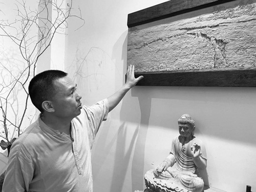 胡先民的作品多以木雕艺术的表现形式承载和诠释人文思想。在胡先民工作室大厅的一侧,一幅名为《一弦春诗满江南》的木雕作品,以精湛的东阳木雕技法,勾勒出一幅生意盎然的自然景象。“这幅作品刻画的是一个琴师想要写一首关于春天的曲子,从上游随波漂流寻找春天,表达了人们在现代都市喧嚣中对宁静安详生活的渴望和向往。”胡先民说,作品中蕴含了很多细节和寓意,其中木舟上的琴师是闭目冥想的状态,而两岸郁郁葱葱的树木与丛林深处斑驳的老房屋形成鲜明对比,暗喻生命的传承。