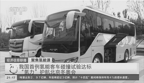 央视财经频道《经济信息联播》报道福田欧辉70兆帕氢燃料客车碰撞试验