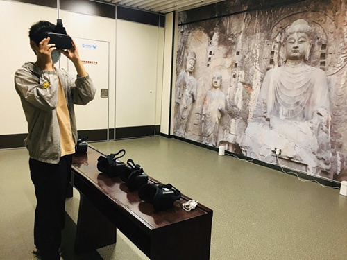 走进少林寺山门,七色莲花等元素依次涌出,佛祖金身在佛光中逐渐呈现;来到大雄宝殿,十八位武僧正在演绎少林功夫……采访中,记者了解到,这些场景是现实与虚拟的结合,让人如身临其境般置身“历史”中的少林。
