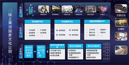 相关负责人介绍,通过运用5G、超高清视频、云计算等方式,建立数字黄河文化遗产标本库、基因库、素材库等整体化的黄河文化资源,利用5G+无人机、5G+AR导览、MR游览、5G+8K超高清直播等技术,赋能多元化文化传播途径,打造黄河文化多媒介传播矩阵,实现黄河文化体验展示、创作传承、传播孵化、文化研究、旅游服务等功能,真正让黄河文化火起来。在应用端,通过5G无人机巡黄河已达流域九省,生动活泼的黄河大鲤鱼和黄河象均可与游人互动留影,以“活”、“火”两字贯穿脉络,让游客领略到数字技术和文化元素融合的魅力。