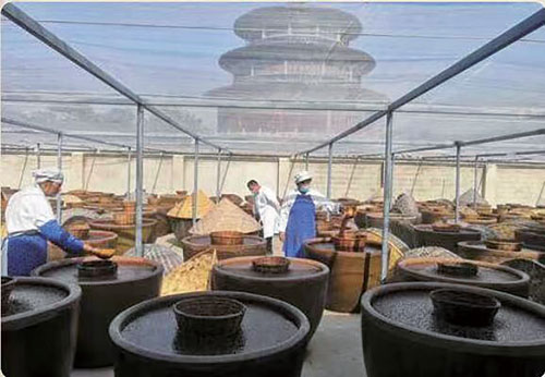 传统酱缸发酵晒酱时温度较高,所以酵母生长比较困难,但纯天然条件、高盐度、固液面与空气充分接触为其他有益菌种生长繁殖创造了机会,尤其是耐高温菌种得以生长,其代谢的香味物质比重较大,如氨基酸态氮等,这是酱香味的主要成分。由于是天然发酵,菌种多、酶系全,产品酱香浓郁、色泽清亮、浓度大、后味重、营养丰富,是老一辈人舌尖上不可磨灭的记忆,深受全国各地群众欢迎。