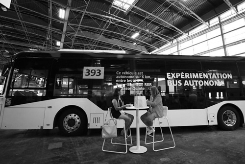 图为6月15日在法国巴黎举行的“科技万岁”科技创新展览会上拍摄的由中国中车旗下中车时代电动汽车股份有限公司制造的自动驾驶客车。