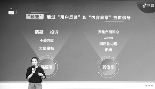 “抖音愿与大家共建不实信息治理平台。”李翔宇表示,抖音正逐步开放溯源、核查、打标、推送等能力,与各方共建谣言库,联合研判不实信息线索,核实存疑内容,并合作传播权威真实信息。
