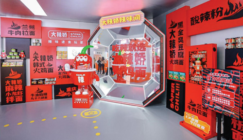 与“汤系列”的慢功夫不同,火鸡面的走红为“大辣娇”注入了“潮辣基因”,更有螺蛳粉、酸辣粉、重庆小面、兰州拉面等具有地域特色的辣味美食陆续上市,从而逐步夯实了该系列与以个性著称的“Z世代”年轻人调性的不谋而合。热烈、奔放的产品定位让无辣不欢的“Z世代”迅速变身“速食玩家”,而白象食品则深谙年轻消费群体所需,与目标群体同频共振,通过潮流的语言表达和色彩的碰撞、动漫元素的融入等迅速与年轻客群打成一片,推出品牌全新IP“辣娇仔”、采用手绘漫画设计“奇葩面馆”、与贵人鸟、ChinaJoy、卫龙辣条、海信、美的等跨界互动……顺利跻身最会和年轻人“玩”在一起的品牌之一。
