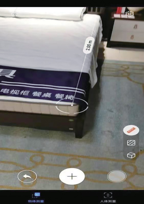 因销售人员的阻止,上海市消保委工作人员无法进行公开用尺量,只能暗暗用手机进行测量。为验证手机测量的准确性,上海市消保委工作人员用同样方法对正常长度的床进行了测量。