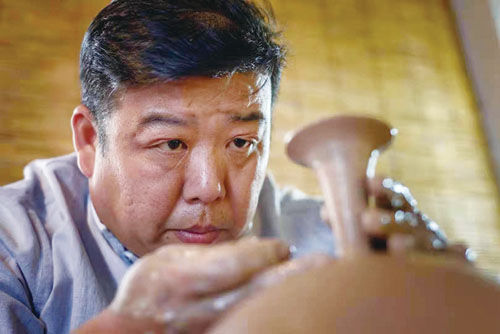从创新悬空无接缝拉坯法、总结并使用跳刀纹装饰技法,再到创新金镶玉装饰技法,处处留心观察,不断改进手法,最终形成个人风格,这样通过创新来实现非遗传承是杨晓锋的“钧瓷精神”。“制瓷贵在技术创新。”在艺术创作中如此,对技能人才培养也是如此。
