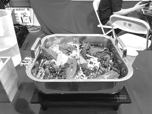 ▼ 图为展会现场展出的火锅底料。
