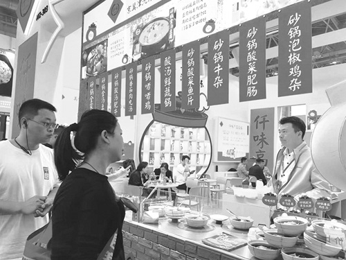 “你们这款酸汤用的是什么材料,市场怎么样?”一位来自河北的餐饮店老板在仟味高汤展台前向工作人员咨询相关信息。工作人员介绍,贵州红酸汤主要以山地番茄、红辣椒为主,加上花椒、木姜籽、薄荷叶等多种配料配制而成,富含多种维生素和矿物质,极具地方特色。近两年,贵州酸汤在火锅市场很火,消费者很喜欢尝试。
