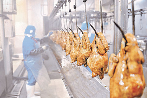 在传承传统技艺的基础上,符离集烧鸡产业也加快技术改造,不断调整优化产品结构,提高市场影响力和占有率。埇桥区委宣传部相关负责人告诉记者,当地烧鸡产业头部企业徽香源食品有限公司和刘老二烧鸡有限公司年均投入研发经费超700万元。徽香源食品有限公司的麻鸡良种提纯繁育项目已取得初步成果;刘老二烧鸡有限公司开发出休闲产品和养老、保健类的功能性产品。各家烧鸡企业都拥有先进的不锈钢宰杀、油炸、卤制、真空包装、高温杀菌等多套流水线生产设备,产品除了传统的烧鸡外,还有风味小菜、调味品等系列产品80多个新品种,并开始从鸡产品向牛、猪、鸭、面筋、豆制品等领域延伸。
