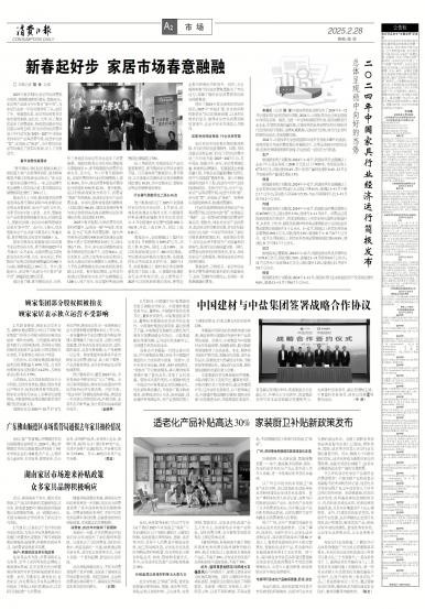 本报讯 (记者 陆 俊)中国家具协会日前发布通知,公开征集2025年中国家具行业以旧换新重点...