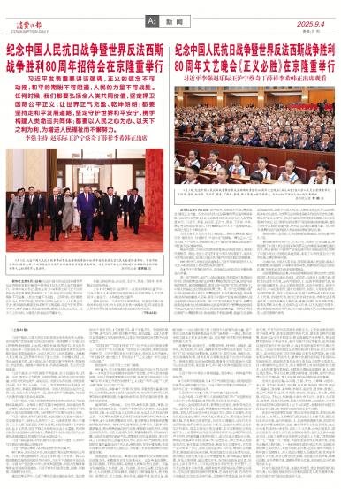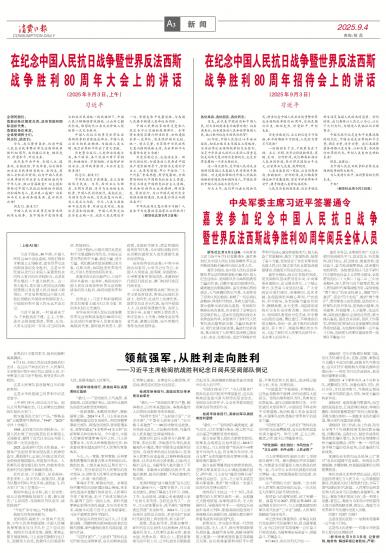9月3日,纪念中国人民抗日战争暨世界反法西斯战争胜利80周年大会在北京天安门广场隆重举行。这是中...